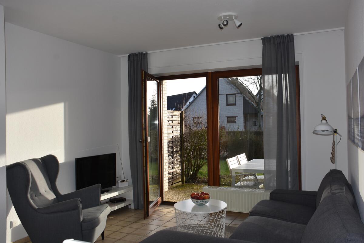 Das 63 Quadratmeter große Haus mit nordisch-moderner Einrichtung bietet auf zwei Etagen alles, was man für schöne Ferien braucht. Im Erdgeschoss befinden sich das gerade komplett renovierte Duschbad samt Waschmaschine sowie der offene Wohn-, Koch- und Essbereich. An der Südseite schließt eine teilweise überdachte Gartenterrasse an, auf der man schöne Sonnenstunden genießen kann.