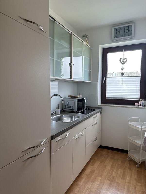Die moderne Einbauküche bietet Ihnen alles, was Sie zum Kochen benötigen. Dabei stehen Ihnen Geschirrspüler, Mikrowelle sowie ein 4-Zonen-Ceranfeld zur Verfügung.