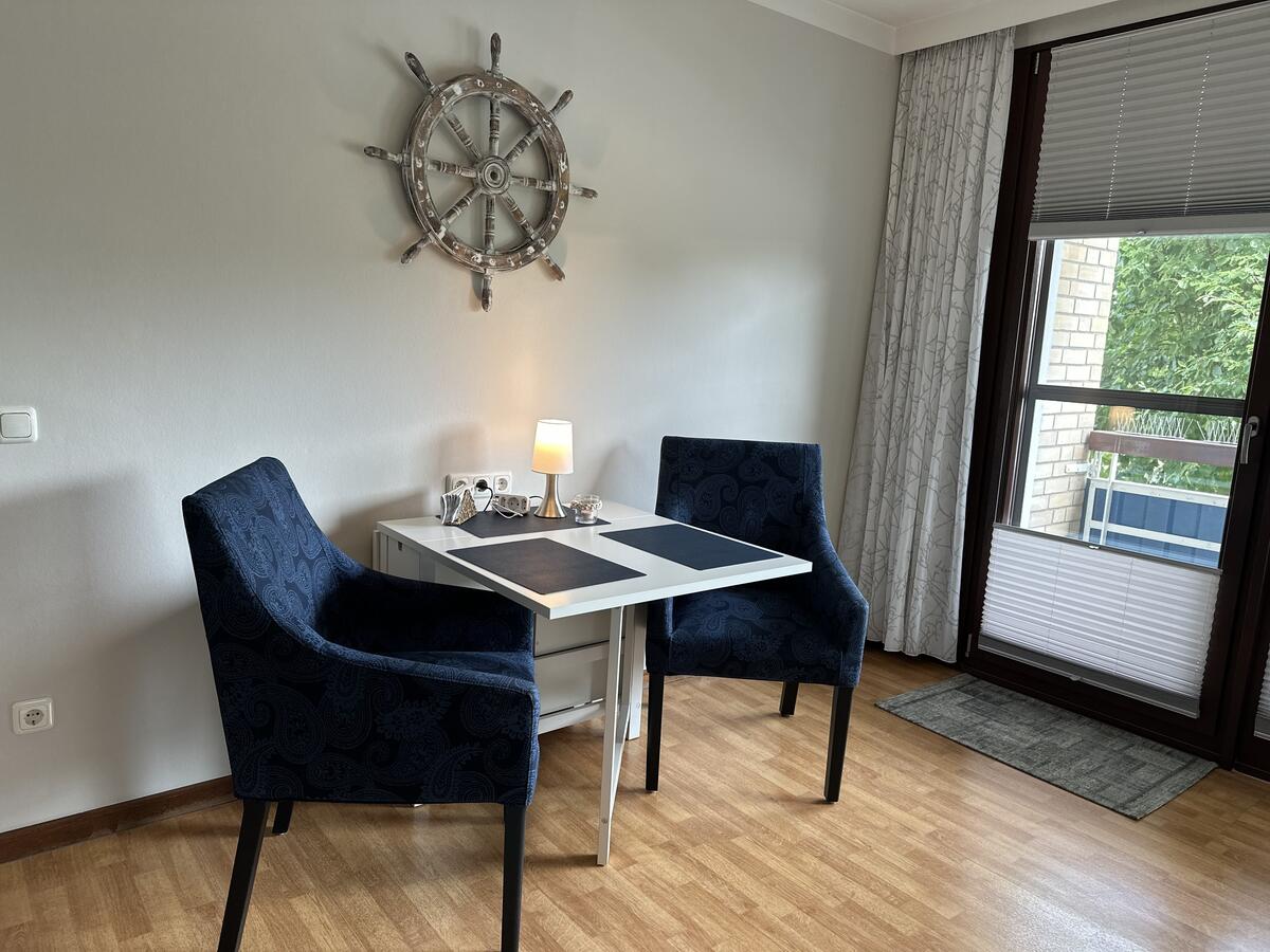 Das großzügige Wohnzimmer bietet viel Platz, ausgestattet mit einer gemütlichen Wohnlandschaft (Schlafcouch, Liegefläche 120x200cm), Smart-TV und einem direktem Zugang zum möbliertem Balkon, der sich ideal für entspannte Stunden im Freien eignet.