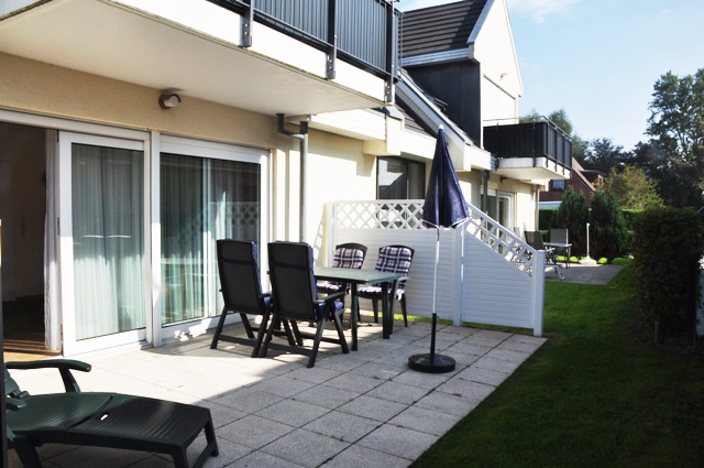 Auf der großen Terrasse können Sie herrlich entspannen oder bei Kaffee und Kuchen klönen.