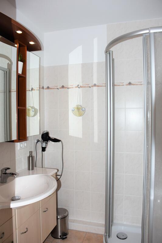 Das Bad ist ausgestattet mit einer Dusche, Waschtisch und WC, sowie ein Fön und genügend Stauraum für Ihre Kosmetika.
