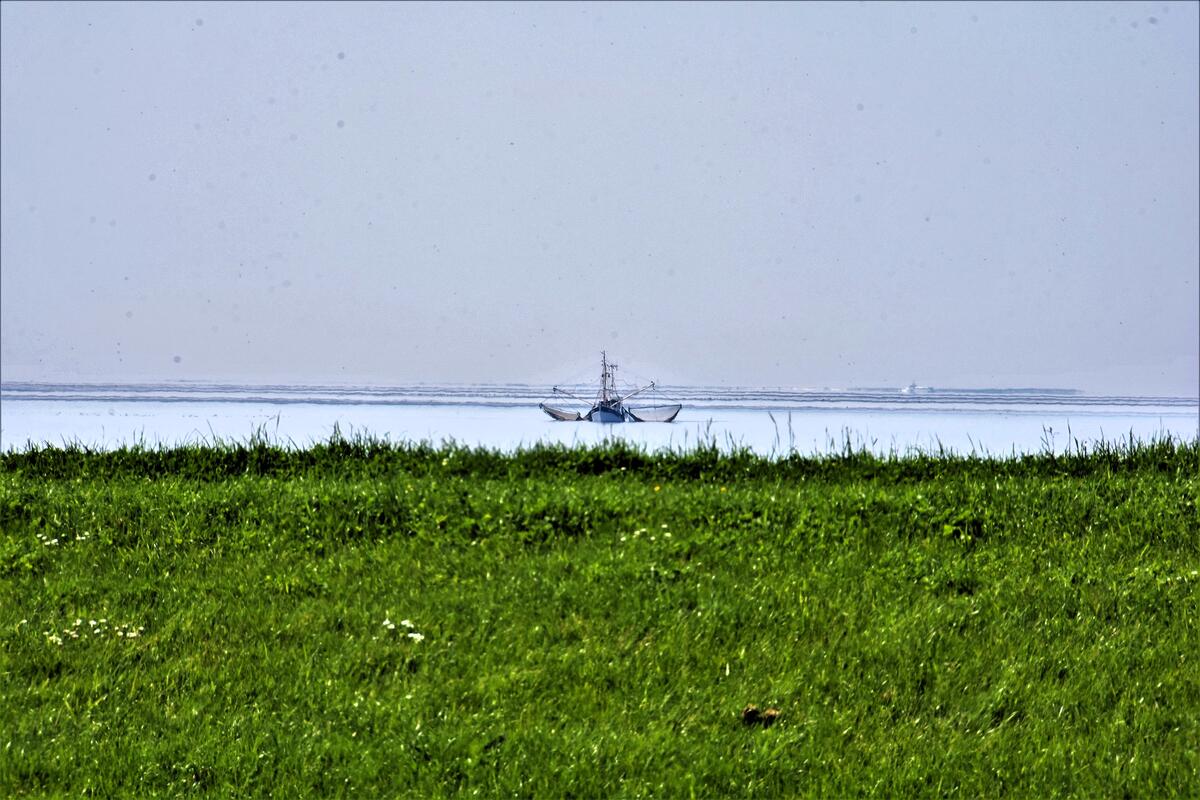 Genießen Sie schöne Sonnenstunden auf dem Balkon (Südseite) mit Blick auf den grünen Deich und über die Deichkrone hinweg auf die Nordsee und vorüberfahrende Schiffe.