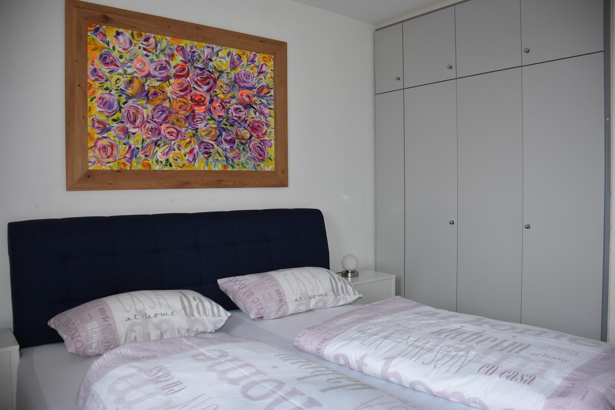 Das Schlafzimmer ist mit einem Boxspringbett (zwei Matrazen eingerichtet.) Sie können elektr. verstellt werden. Ein weiteres TV-Gerät ist ebenfalls vorhanden. Das Bad ist eine kleine Wohlfühlzone mit Badewanne mit Duschvorrichtung und Glastrennwand,, Waschbecken, WC. Auf dem Balkon können Sie am Abend die Sonne im Meer versinken sehen.