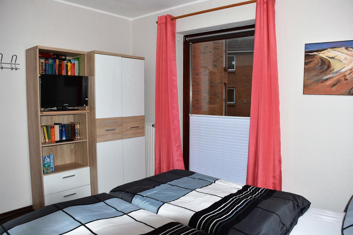 Im Schlafzimmer befindet sich ein Doppelbett, ein Kleiderschrank und ein weiteres TV-Gerät. So kann jeder das gucken was er möchte.
