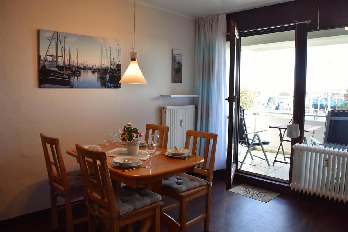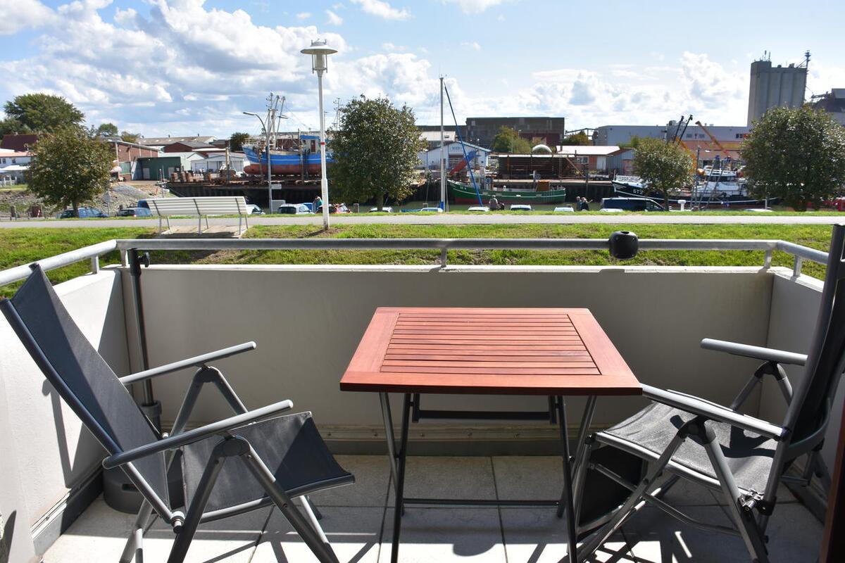 Die Zweiraumwohnung im Haus Achtern Diek, im 1. Stock, Balkon mit Hafenblick, hat eine Größe von ca. 45 qm und bietet Platz für zwei bis drei Personen.