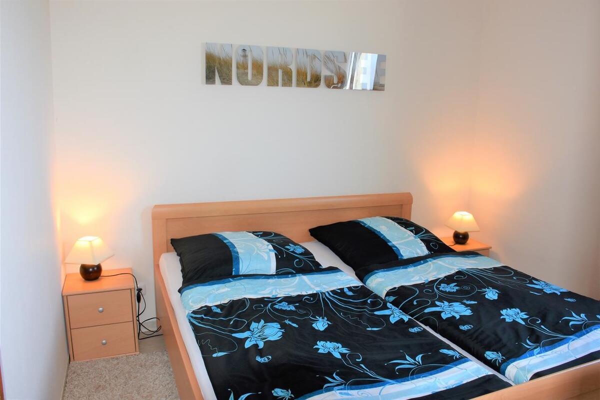 Das Schlafzimmer bietet eine kleine Traumoase mit eingebautem Kleiderschrank mit viel Stauraum und einem Doppelbett.