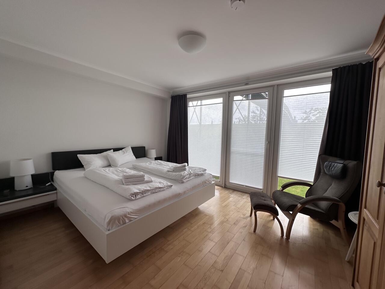 Wohnfläche:75 m² / 3 Räume Anzahl Personen:für bis zu 4 Personen Zustellbett möglich:nein Komfort:Gehobene Ausstattung Küche:ja (Küchenzeile)Kühlschrank, Backofen, 4-Zonen Cerankochfeld, Geschirrspüler, Kühlschrank mit Eisfach Wohnzimmer:Wohnzimmer mit Schlafcouch, Essplatz Schlafzimmer:2 Schlafzimmer mit Doppelbett und Kleiderschrank Bad:Vollbad mit WC und separater Dusche (Duschbad mit ebenerdiger Dusche und Badewannenbad mit Waschmaschine) Internetzugang:WLAN Dies ist eine freiwillige Leistung. Es besteht kein Rechtsanspruch Besonderheiten:Entspannen Sie kostenlos im hauseigenem Wellness-Bereich mit Dampfbad, Sauna und großzügigem Ruheraum. Die Benutzung erfolgt auf eigene Verantwortung. Direktlink zum Objekt