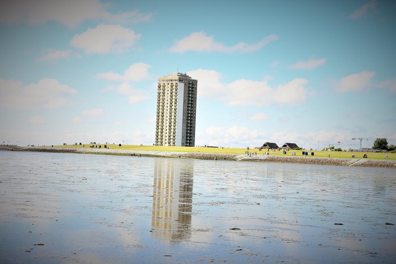 Nicht zu vergessen, der an der Schleswig-Holsteinischen Nordseeküste absolut einmalige Rundum-Ausblick von der Dachterrasse des 21. Stockwerks des Hochhauses.