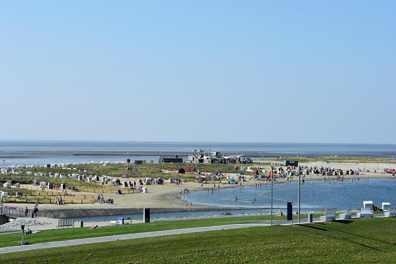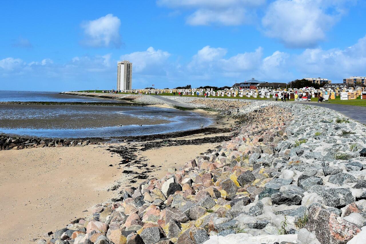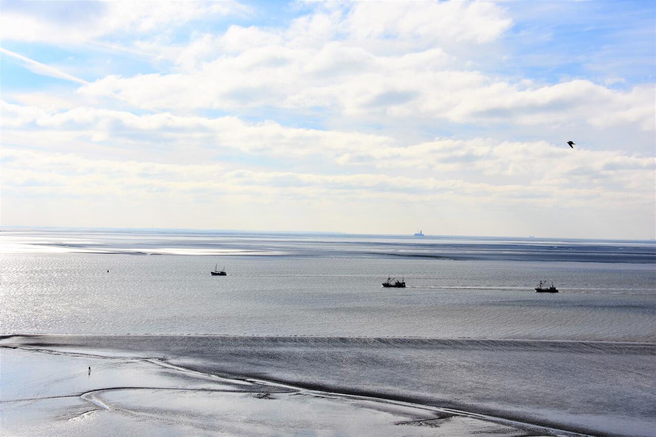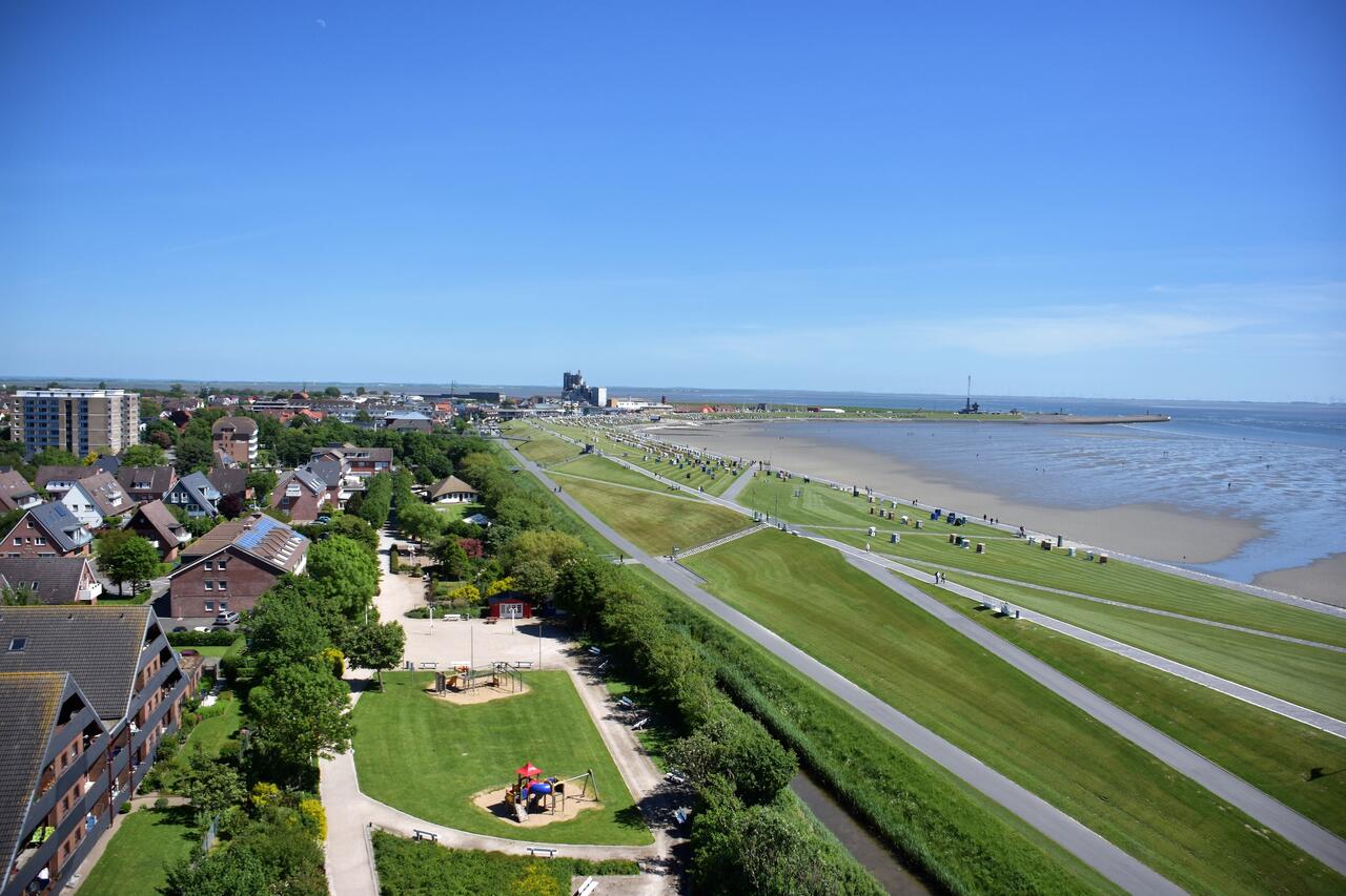 Lassen sie Ihren Blick schweifen über die Dithmarscher Bucht und beobachten Sie die Krabbenkutter, Ausflugsdampfer und Segelschiffe die vorbeiziehen. Der Panoramablick ist einzigartig.