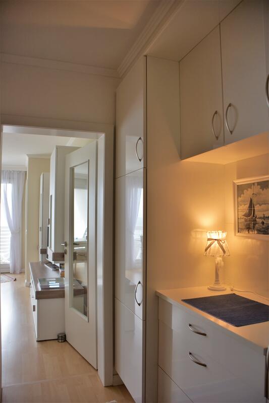 Unsere behagliche Ferienwohnung befindet sich in der 15. Etage. Auf 53 qm können sich 2 Personen so richtig wohlfühlen.