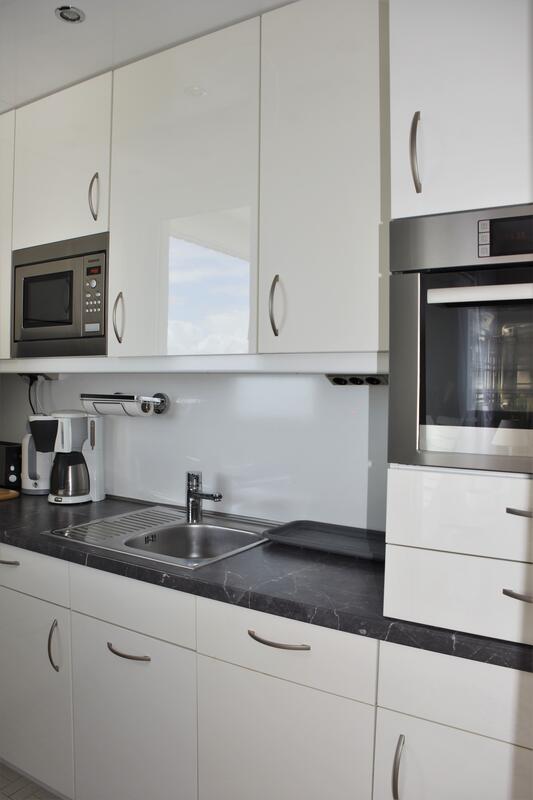 Die offene Küche ist mit allem ausgestattet was Sie benötigen, inkl. Geschirrspüler und Waschtrockner.