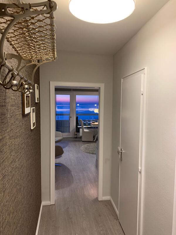 Der Wohn-/Schlafraum ist mit hochwertigen Möbeln ausgestattet. Ein großes Boxspringbett (180x200 cm) bietet genügend Platz zum Erholen. Genießen Sie einen traumhaften Ausblick auf die Nordsee während des Frühstücks oder Abendessen.
