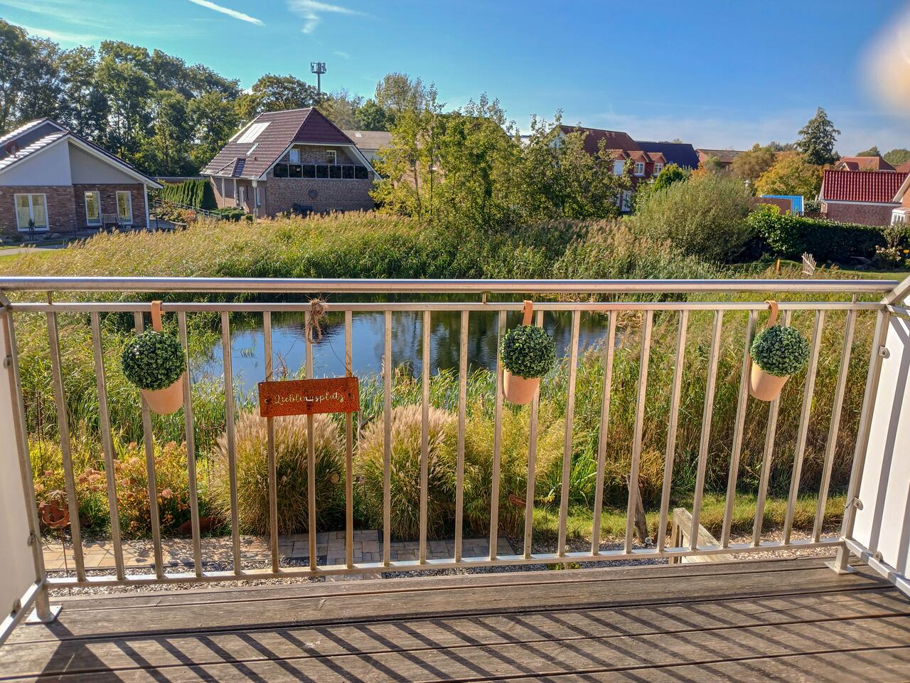 Ein besonderes Highlight der Wohnung ist der wunderschöne Ausblick auf den direkt angrenzenden Teich. Beobachten Sie die Tierwelt am Abend bei einem Glas Wein und genießen Sie die Ruhe.