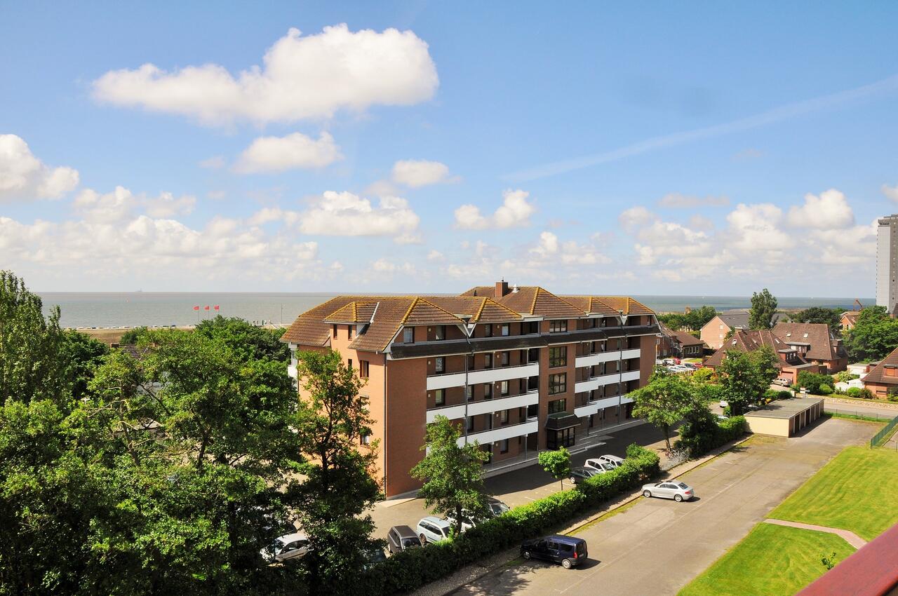 Sie wohnen im 4. Stock, in einer 2-Zimmer-Ferienwohnung mit Meerblick für 2 - 4 Personen. Genießen Sie den tollen Blick aufs Meer und lassen sie sich verzaubern, wenn Sie an einem lauen Sommerabend vom Balkon aus (8,55 m²) den berühmten Büsumer Sonnenuntergang erleben.