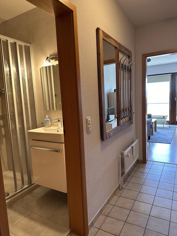Wohnfläche:45 m² / 2 Räume Etage/Geschoss:1 (Fahrstuhl vorhanden) Anzahl Personen:für bis zu 3 Personen Zustellbett möglich:nein Komfort:Mittlere Ausstattung Küche:ja (Küchenzeile)Ceranfeld, Mikrowelle, Kühlschrank ohne Eisfach Wohnzimmer:Wohnzimmer mit Schlafcouch für 2 Personen, Sessel, Flachbild-TV und Essplatz Schlafzimmer:Doppelbett und Kleiderschrank Bad:Duschbad mit WC (neues Duschbad 2025) Internetzugang:WLAN über Hot-Spot. Dies ist eine freiwillige Leistung. Es besteht kein Rechtsanspruch Besonderheiten:Fahrradraum im Gemeinschaftskeller Direktlink zum Objekt