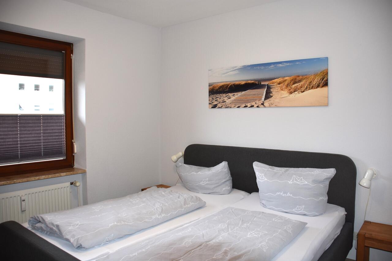 Auf 48 m² Wohnfläche bietet Ihnen diese Wohnung alles, um einen erholsamen Urlaub zu verbringen. Die Betten im Schlafzimmer sind in Seniorenhöhe Federholzrahmen, Formschaum-Matratze von Dunlopila, Kopf- und Fußteil verstellbar. Der Wohnraum ist mit einer Couchgarnitur und einem Flachbildfernseher ausgestattet.