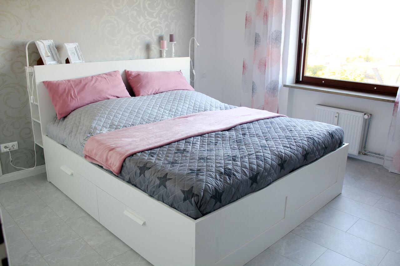Das Schlafzimmer bietet Ihnen eine Ruhezone mit einem Doppelbett und Kleiderschrank. Für die kleinen Gäste befindet sich in der Wohnung auch ein Kinderreisebett und ein Hochstuhl
