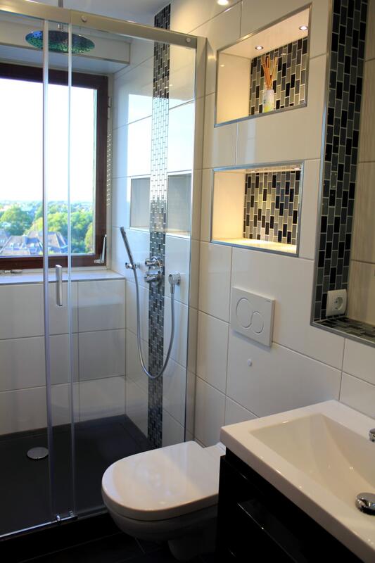 Das Badezimmer ist neu renoviert und mit Dusche und WC ausgestattet.