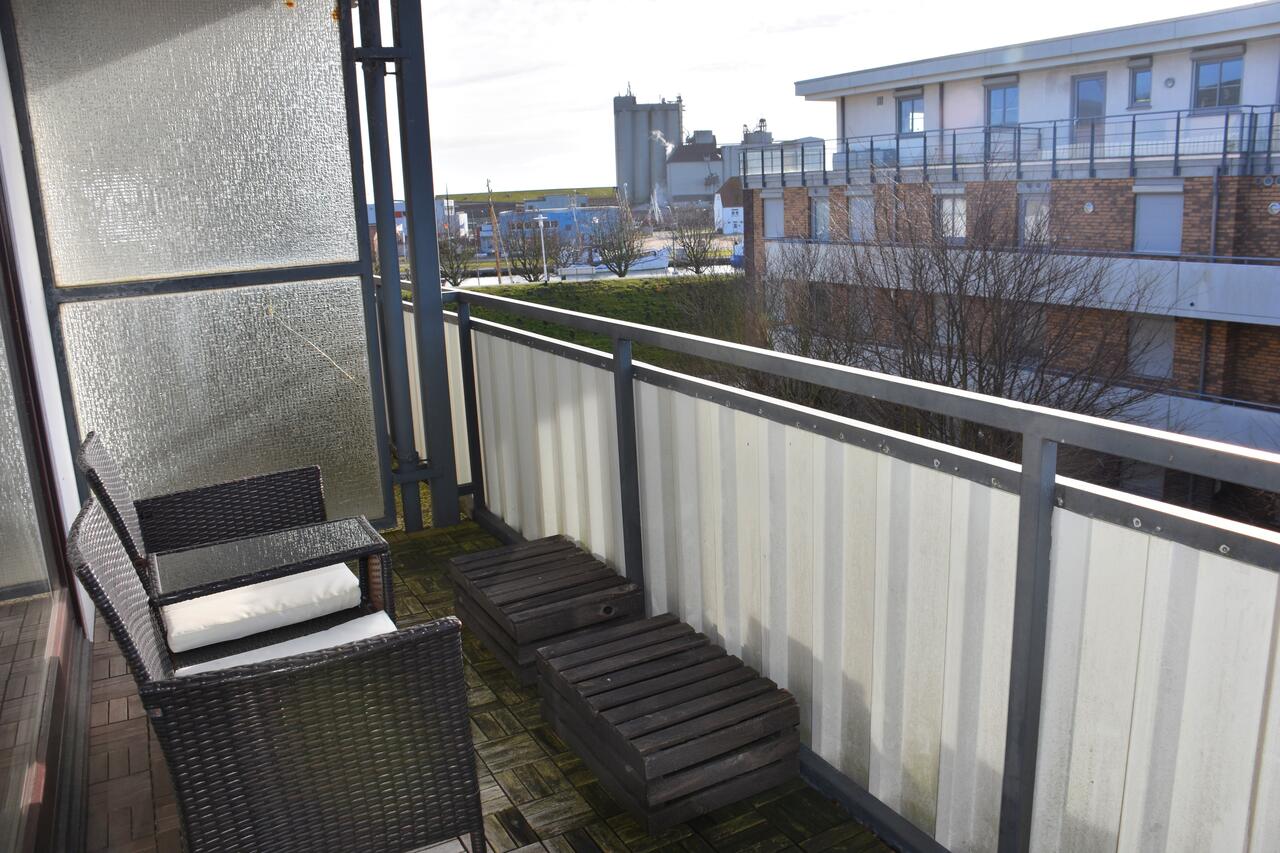 Ob nun morgens oder abends nach dem Strandbesuch – der Balkon (Südwestseite) lädt Sie zum Entspannen und Verweilen ein. Von hier aus haben Sie einen Blick auf den Hafen.